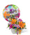 Celebrate their special day with a bright and cheerful birthday bouquet bursting with color and charm. This festive arrangement features vibrant orange lilies, hot pink carnations, green button poms, lavender daisies, and purple monte casino, all nestled among fresh greenery. Presented in a classic white woven basket and topped with a fun birthday mylar balloon and a personalized card message, it's a joyful gift that makes any birthday feel extra special.