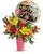 Celebrate their special day in a most beautiful way with this burst of bright blooms and a Happy Birthday balloon! This bouquet of hot pink roses, bright yellow lilies and orange alstroemeria in a happy pink vase is an extra special birthday surprise!