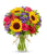 Send a cheerful burst of sunshine with this vibrant bouquet, perfect for birthdays, celebrations, or just to brighten someone's day. Radiant sunflowers steal the spotlight, beautifully complemented by hot pink roses, red alstroemeria, purple Monte Casino asters, and lively green poms. Arranged in a clear glass vase and tied with rustic raffia, this colorful mix brings warmth, joy, and charm to any space.
