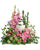 Honor the cremation urn with this pristine pink arrangement of hydrangea, roses and lilies, a soft, feminine tribute to an inspiring life.