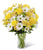 Radiant and full of cheer, this sunny bouquet features vibrant yellow roses, golden alstroemeria, white daisies, and fresh green poms. Thoughtfully arranged in a classic clear glass vase, it's the perfect gift to lift someone's spirits, celebrate a birthday, or add a touch of brightness to any day. Warm, joyful, and full of life, this arrangement brings happiness wherever it goes.