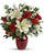 This beloved bouquet includes red roses, white asiatic lilies, red carnations, red miniature carnations, white cushion spray roses, white sinuata statice, dusty miller, huckleberry, and lemon leaf.